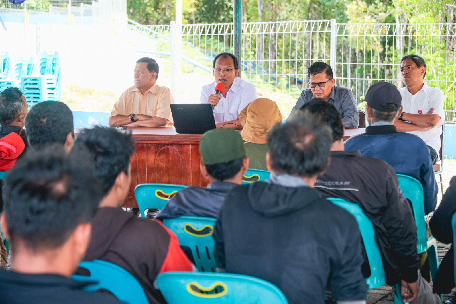 Bupati Humbang Hasundutan Dosmar Banjarnahor, SE berdiskusi dengan masyarakat yang tergabung dalam Kelompok Tani (Poktan) untuk pengembangan food estate, Rabu (1/2) di Desa Riaria Kecamatan Pollung.