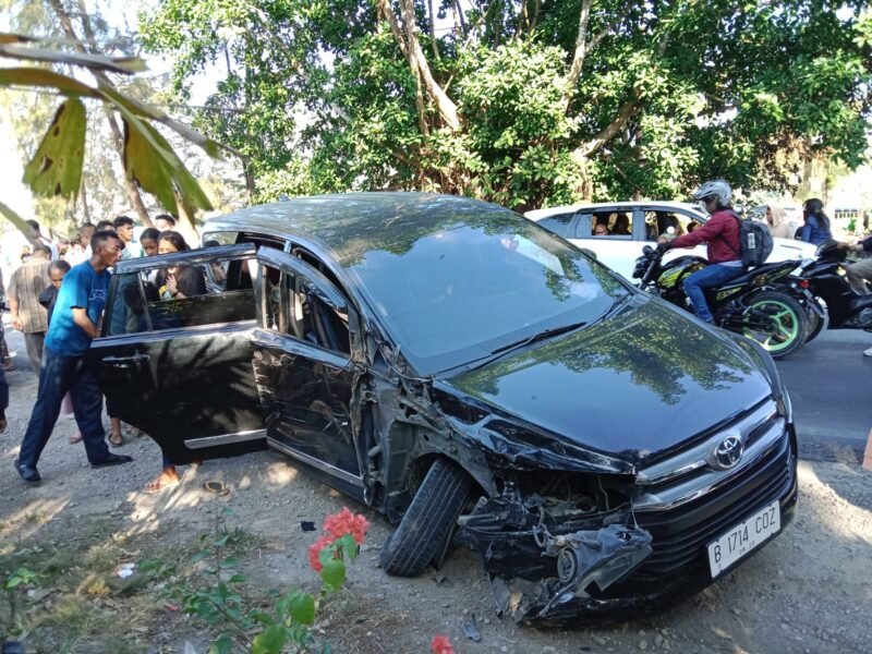 Di Duga Mengantuk, Pengemudi Sebuah Mobil Minibus Menabrak Tronton Dan Motor Di KM.16 Timor Raya Tarus Kupang