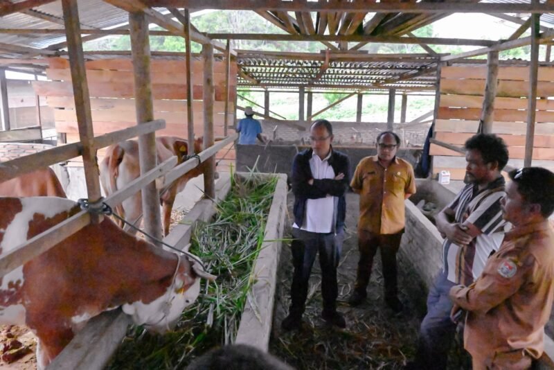 Bupati Humbahas Dosmar Banjarnahor, S.E. bersama Kadis Peternakan dan Perikanan Parman Lumbangaol meninjau peternakan sapi milik Kelompok Tani Dosroha Marade di Desa Sipituhuta Kecamatan Pollung, Senin (17/7).