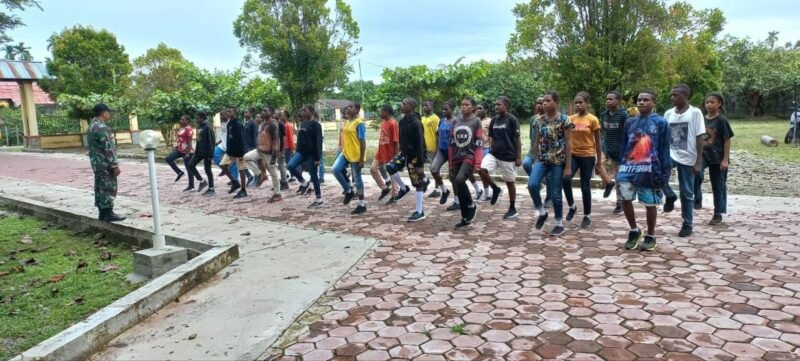 Babinsa Koramil 1710-03/Kuala Kencana dipimpin Serma Safii memberikan pelatihan baris berbaris kepada siswa siswi baru SMP Katholik Kokonao, Jumat (04/08/2023). Kegiatan ini merupakan salah satu kegiatan untuk melatih para siswa lebih mencintai tanah air dan juga menghargai jasa para pahlawan terdahulu. Kegiatan ini sebelumnya sudah dikoordinasikan dengan pihak sekolah dan pihak sekolah pun sangat senang dengan adanya pelatihan ini.