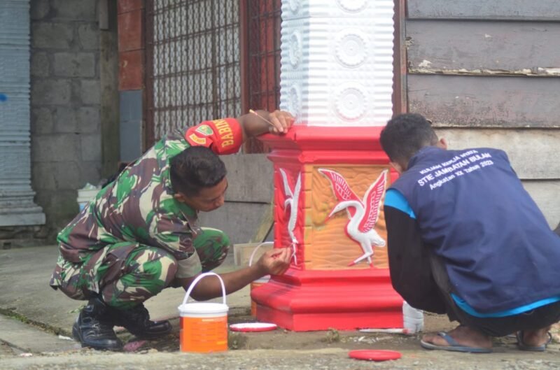 Banyak hal yang bisa dilakukan untuk menyambut HUT RI ke-78, salah satunya seperti yang dilakukan oleh Babinsa Koramil 1710-02/Timika, Sertu Rusdin Wali yang mengecat gapura di wilayah binaannya. Kegiatan pengecatan gapura tersebut dilaksanakan di Kp. Mawokau Jaya, Distrik Mimika Baru, Kabupaten Mimika yang dilaksanakan bersama Mahasiswa KKN STIE Jambatan Bulan, Kamis (10/08/2023).