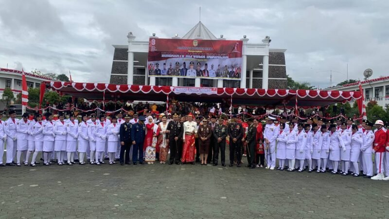 Komandan Kodim 1710/Mimika Letkol Inf Dedy Dwi Cahyadi menghadiri Upacara Hari Ulang Tahun (HUT) Kemerdekaan Republik Indonesia ke-78, bertempat di halaman kantor pusat pemerintahan Kabupaten Mimika Jln Cendrawasih, Distrik Kuala Kencana, Kab. Mimika, Kamis (17/08/2023).
