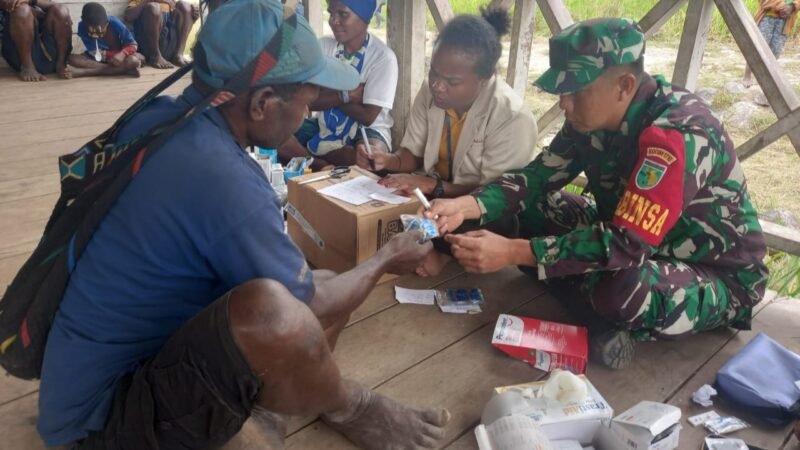 Babinsa Koramil 1710-05/Jila ikut membantu petugas dari Puskesmas Jila, untuk melakukan pendataan anak-anak stunting di wilayah binaannya di Kampung Jila. Serma Nurhayun dan Serda Hendra Deni P. bersama Bidan Puskesmas Jila, melaksanakan kegiatan Bulan Operasi Timbang dan Pemberian Vitamin “A” di Postu Jila, Kampung Jila, Distrik Jila, Kabupaten Mimika, Rabu (23/08/2023).