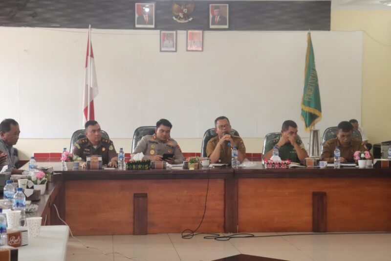 Bupati Toba, Poltak Sitorus buka Rapat Kerja Forum Koordinasi Pimpinan Daerah (Forkopimda) di Ruang Balai Data Lantai IV Kantor Bupati Toba, Senin (28/8/2023).