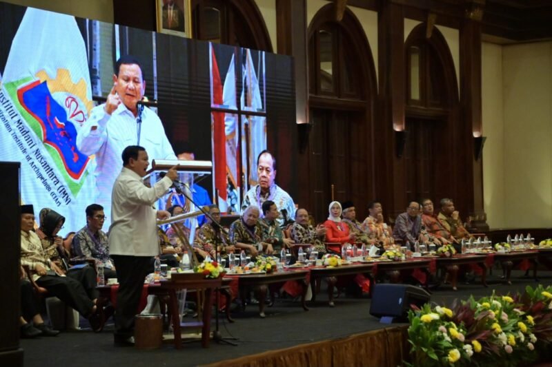 Menteri Pertahanan RI Prabowo Subianto menjadi keynote speaker Seminar Nasional Kebangsaan yang diselenggarakan Institut Madani Nusantara (IMN) di Jakarta, Sabtu (30/9/2023). Seminar yang mengusung tema “Penguatan Peradaban Menyongsong Indonesia Emas 2045 Bersama 1000 Guru Besar, Rektor, dan Cendekiawan Se-Indonesia” ini dilaksanakan dalam rangka memperingati Hari Kesaktian Pancasila.