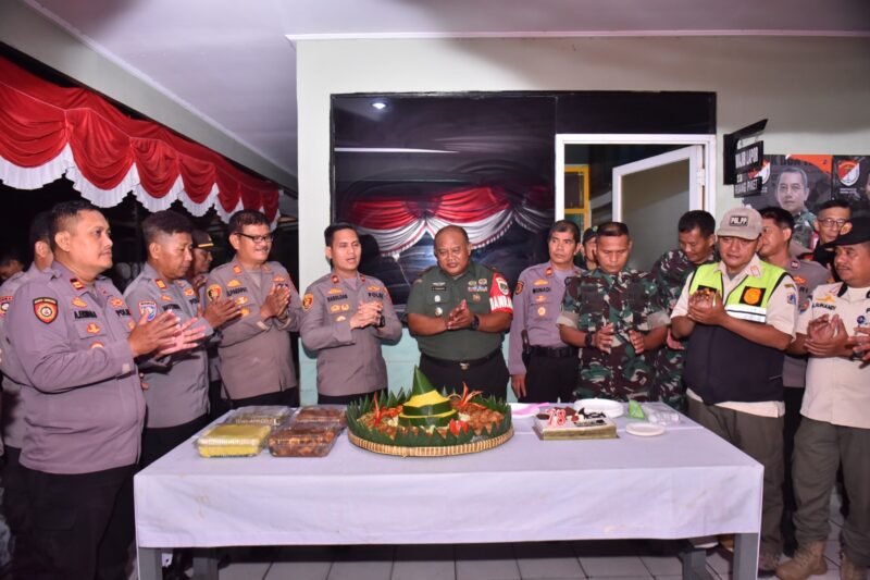 Kapolsek Cengkareng bersama personel tiba di Markas Koramil 04/Cengkareng dengan membawa kue dan nasi tumpeng sebagai lambang persahabatan yang erat antara kedua lembaga penegak hukum ini.