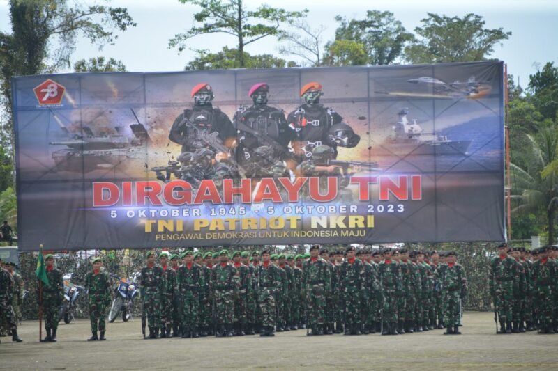 Bertempat di Lapangan Upacara kantor Pusat Pemerintahan Kabupaten Mimika, Dandim 1710/Mimika Letkol Inf Dedy Dwi Cahyadi mengikuti upacara dalam rangka memperingati HUT Ke-78 TNI Tahun 2023 dengan Tema “TNI PATRIOT NKRI, Pengawal Demokrasi Untuk Indonesia Maju”, Kamis (05/10/2023).