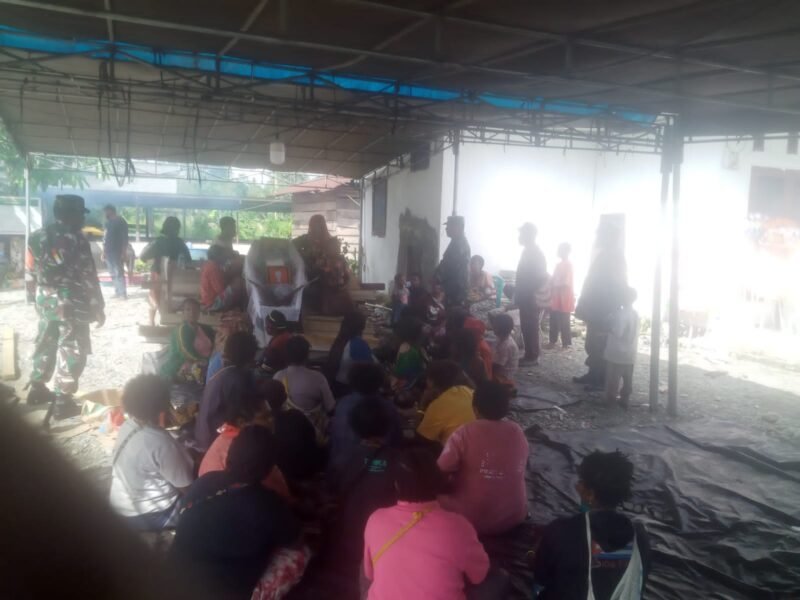 Mengetahui ada warga binaannya yang meninggal dunia, Danramil 1710-03/Kuala Kencana Kapten Inf Gertaim Pakpahan bersama Babinsa melayat ke rumah duka Almarhum Bapak Marthinus Yatipai yang merupakan Kepala Kampung Mimika Gunung, Distrik Kuala Kencana, Kab. Mimika, Sabtu (21/10/2023).