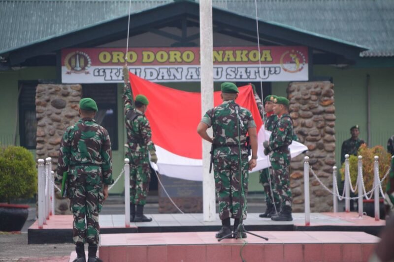 Bertempat di Lapangan Makodim 1710/Mimika, Jl. Agimuga Mile 32, Distrik Kuala Kencana, Kab. Mimika, Kodim 1710/Mimika menggelar upacara dalam rangka memperingati Hari Sumpah Pemuda Ke-95 Tahun 2023, bertindak sebagai Inspektur Upacara adalah Dandim 1710/Mimika Letkol Inf Dedy Dwi Cahyadi, dengan tema “Bersama Majukan Indonesia”, Sabtu (28/10/2023).