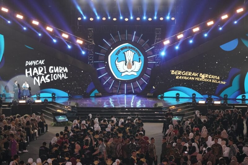 (Puspen TNI). Panglima TNI Jenderal TNI Agus Subiyanto mendampingi Presiden RI Joko Widodo menghadiri Hari Guru Nasional Tahun 2023 dan Hari Ulang Tahun ke-78 PGRI, dengan tema “Bergerak Bersama, Rayakan Merdeka Belajar,” diikuti oleh 7500 guru, dan 4500 guru mengikuti secara daring di seluruh Indonesia, yang dipusatkan di Arena Gelora Bung Karno, Senayan, Jakarta Pusat. Sabtu (25/11/2023).