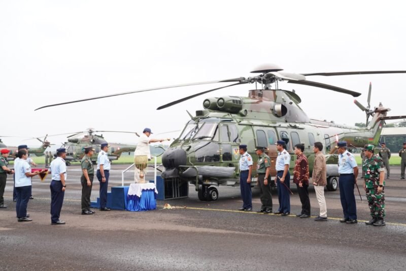 (Puspen TNI). Kasum TNI Letjen TNI Bambang Ismawan, S.E., M.M. mewakili Panglima TNI Jenderal TNI Agus Subiyanto, S.E., M.Si menghadiri penyerahan delapan unit helikopter angkut berat H255M dan satu unit H255M full flight simulator dari Menhan RI kepada Kepala Staf TNI Angkatan Udara Marsekal TNI Fadjar Prasetyo di Lanud Atang Sendjaja Bogor, Jumat (1/12/2023).
