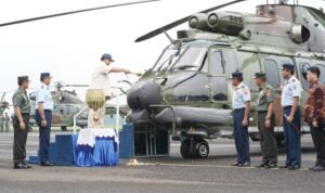 Sebelum prosesi penyerahan helikopter, Menhan Prabowo menyampaikan apresiasinya dan menjadi suatu kehormatan dapat menyerahkan helikopter dan simulator H225M kepada Angkatan Udara.