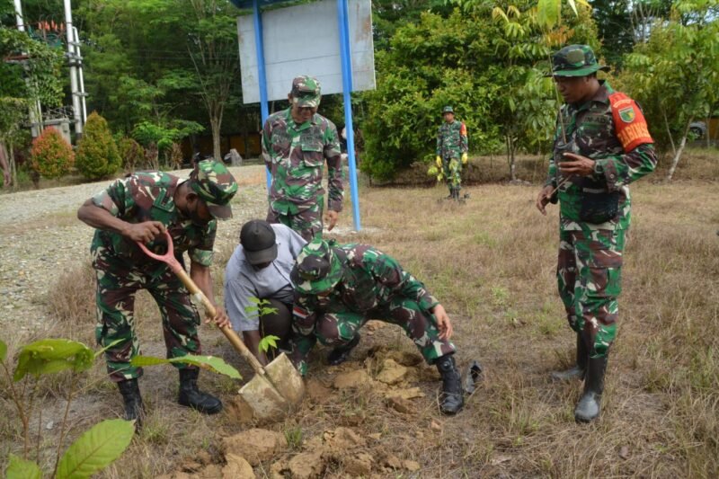 Alam merupakan berkah yang besar dari Tuhan Yang Maha Esa bagi umat manusia dan sudah merupakan kewajiban bersama untuk menjaga kelestarian alam. Mempedomani hal tersebut dan untuk menyambut Hari Juang TNI AD ke-78, Kodim 1710/Mimika bersama masyarakat Kampung Mandiri Jaya melaksanakan penanaman pohon, Rabu (13/12/2023). Kegiatan tersebut dilaksanakan di Kampung Mandiri Jaya, Distrik Wania, Kabupaten Mimika, yang diikuti sekitar 70 orang yang terdiri dari prajurit dan masyarakat setempat dipimpin Pasiter, Kapten Inf Teguh Heru.