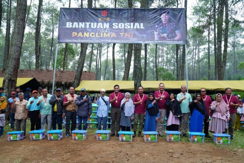 (Puspen TNI). Panglima TNI Jenderal TNI Agus Subiyanto bagikan 2.000 paket Sembako kepada masyarakat Lembang dalam rangka Bakti Sosial pada acara yang bertajuk  ‘One Day Experience Adventure dan Social Awareness’ di Lapangan Bola Balaturangga Denkavkud Pussenkav, Bandung, Minggu (17/12/2023).