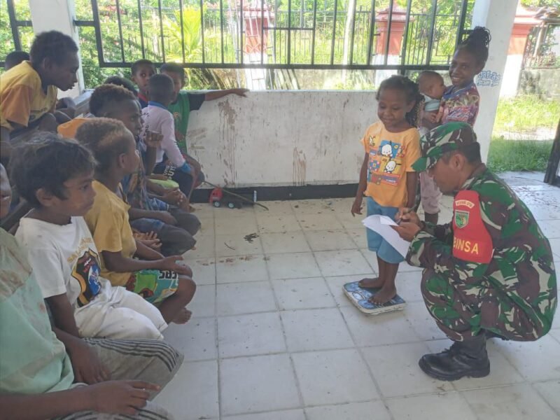Wujud kepedulian terhadap perkembangan pertumbuhan anak di wilayah binaan, Babinsa Koramil 1710-07/Mapurujaya Koptu Redemtus Riyanto melaksanakan kegiatan pembagian PMT (Pembagian Makanan Tambahan) berupa telur rebus kepada anak-anak yang masuk dalam kategori stunting, bertempat di Balai kelurahan Wania, Distrik Mimika Timur, Kab. Mimika, Kamis (28/12/2023).