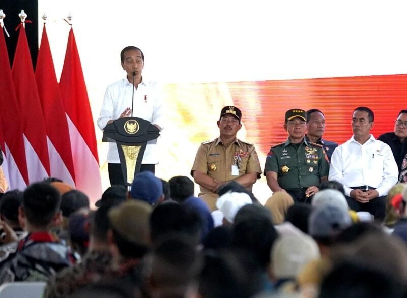 (Puspen TNI). Panglima TNI Jenderal TNI Agus Subiyanto mendampingi Presiden RI Ir. H. Joko Widodo (Jokowi) saat menemui puluhan ribu petani se-Jawa Tengah, bertemakan “Pembinaan Petani Se-Provinsi Jawa Tengah Mendukung Peningkatan Produksi Padi dan Jagung Nasional”, bertempat di GOR Satria Purwokerto, Kabupaten Banyumas, Provinsi Jawa Tengah, Selasa (2/1/2024).