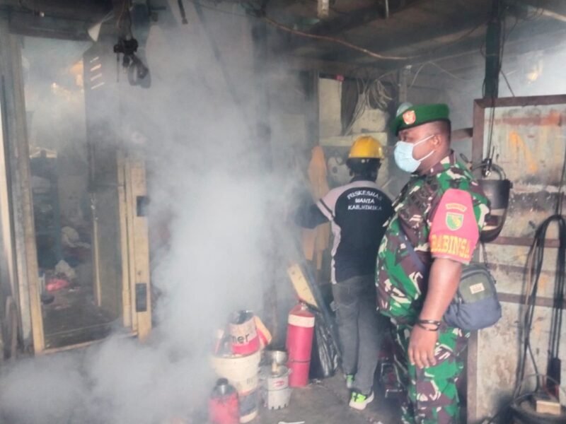 Hal inilah yang menggugah para Babinsa dari Koramil 1710-02/Timika untuk selalu berupaya membantu warga binaannya agar tidak terjangkit malaria dengan rutin memberikan himbauan kepada warga untuk selalu mematuhi pola hidup sehat maupun dengan melaksanakan pendampingan petugas kesehatan dalam kegiatan penyemprotan cairan Pestisida ke rumah warga, Minggu (14/01/2024).