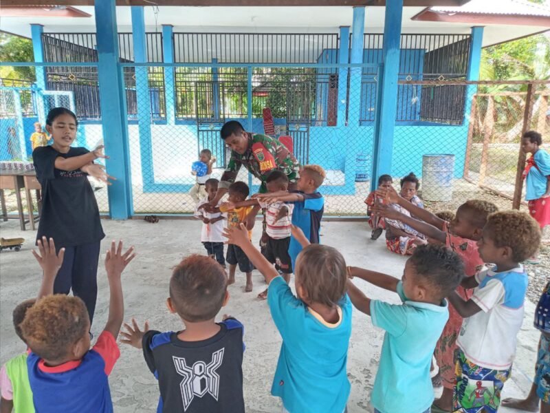 Babinsa Koramil 1710-07/Mapurujaya Tanamkan Rasa Cinta Tanah Air Kepada Siswa Taman Kanak-Kanak Sembari Ajak Bermain