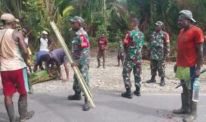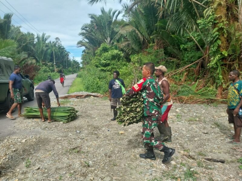 Acara adat di Papua bernilai sangat sakral dan sangat dihormati oleh masyarakat setempat. Sebagai aparat teritorial, Babinsa Koramil 1710-03/Kuala Kencana menyadari bahwa hal tersebut perlu dijaga demi kelestarian adat budaya sebagai kekayaan Indonesia. Mempedomani hal tersebut, kali ini Babinsa Koramil 1710-03/Kuala Kencana dipimpin Serka Noben Wenda bersama warga bahu membahu mengambil pelepah daun sagu, Rabu (24/01/2023).