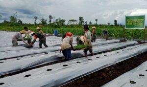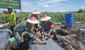 Dalam rangka membantu pemerintah mewujudkan ketahanan pangan, Babinsa Koramil 1710-02/Timika dipimpin Serma Butarbutar ajak kelompok tani binaan tanam 7000 bibit Melon di kebun percontohan milik Koramil 1710-02/Timika Jl. Irigasi Kel. Pasar Sentral, Distrik Mimika Baru, Kab. Mimika, Jumat (26/01/2024).