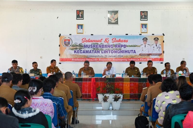 Bupati Humbahas Dosmar Banjarnahor, S.E. bersama Asisten Administrasi Umum Tua Marsatti Marbun, S.E. dan para pimpinan OPD (Organisasi Perangkat Daerah) hadiri Musrenbang (Musyawarah Perencanaan Pembangunan) Kecamatan Lintongnihuta, Selasa (30/1/2024) bertempat di Aula Kantor Camat Lintongnihuta.
