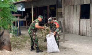 Danramil Kuala Kencana Kerahkan Anggotanya Bantu Warga Bersihkan Lingkungan