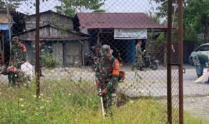 Pagi ini personel Koramil 1710-03/Kuala Kencana dipimpin Danramil Kapten Inf Gertaim Pakpahan membantu warga di wilayah binaan Kp. Mulia Kencana Sp.7 Distrik Iwaka, Kab. Mimika, melaksanakan kegiatan kerja bakti membersihkan lingkungan, Selasa (30/01/2024).