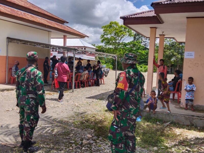 Personel Kodim 1710/Mimika melaksanakan kegiatan patroli dialogis dibeberapa lokasi di wilayah Timika untuk meningkatkan partisipasi warga masyarakat sebagai upaya menjaga kondusifitas wilayah Kab. Mimika sebelum, selama dan pasca Pemilu tahun 2024 dipimpin Pasiops Kodim 1710/Mimika Kapten Inf Helly Sukmajaya, Kamis (15/02/2024).
