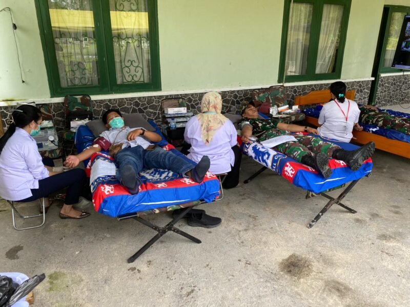 Kegiatan donor darah tersebut merupakan bagian dari program TMMD yang bertujuan untuk memberikan manfaat langsung kepada masyarakat sekitar. Para anggota Satgas TMMD dan masyarakat setempat turut serta dalam kegiatan donor darah ini dengan antusias.