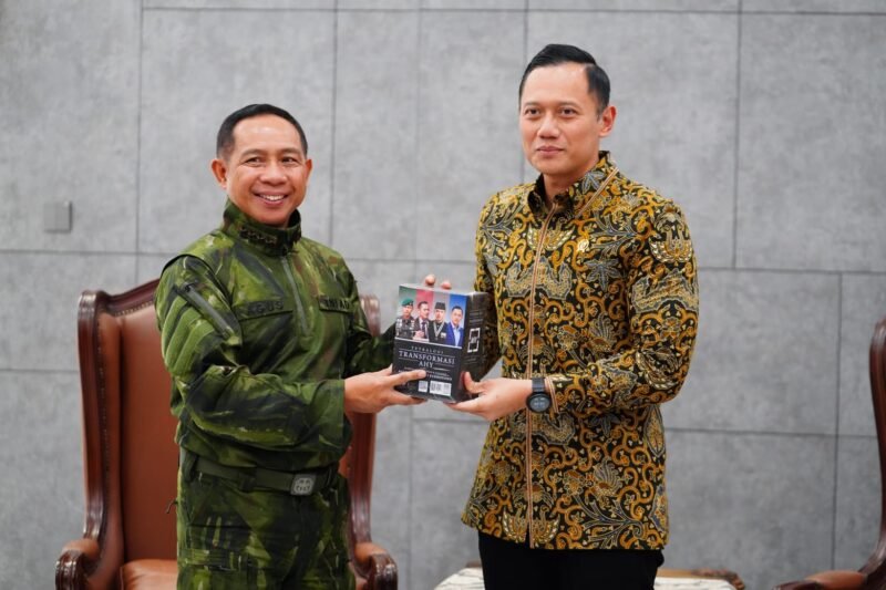 (Puspen TNI). Panglima TNI, Jenderal TNI Agus Subiyanto menerima kunjungan dari Menteri Agraria dan Tata Ruang (ATR) Badan Pertanahan Nasional (BPN), Agus Harimurti Yudhoyono di Subden Mabes TNI, Jalan Merdeka Barat, Jakarta Pusat, pada Selasa 19 Maret 2024.