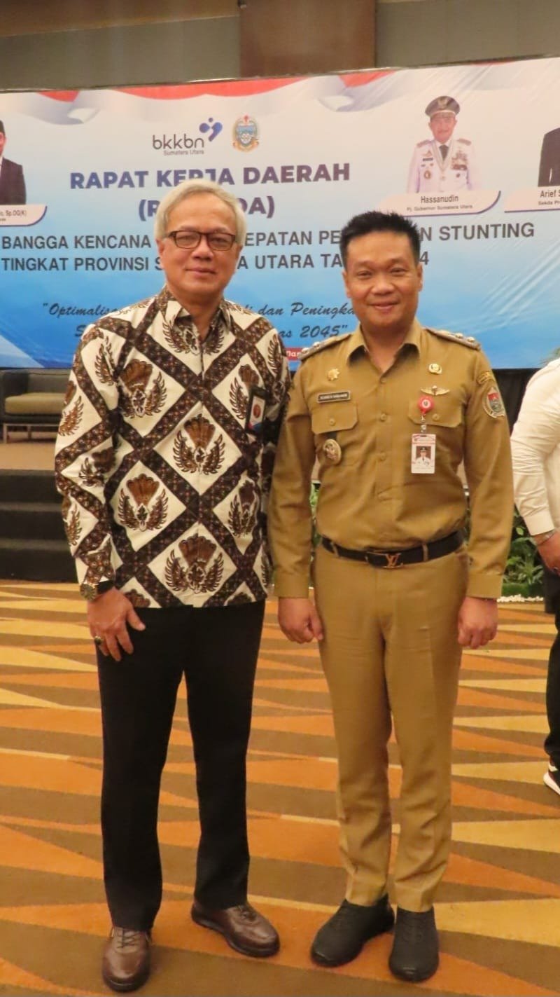 Wakil Bupati Humbahas Dr Oloan P Nababan SH MH yang juga Ketua Tim Percepatan Penurunan Stunting Kabupaten Humbahas ikut menghadiri Rakerda (Rapat Kerja Daerah) Program Bangga Kencana dan Percepatan Penurunan Stunting tingkat Provinsi Sumut, Senin (25/3) di Medan.