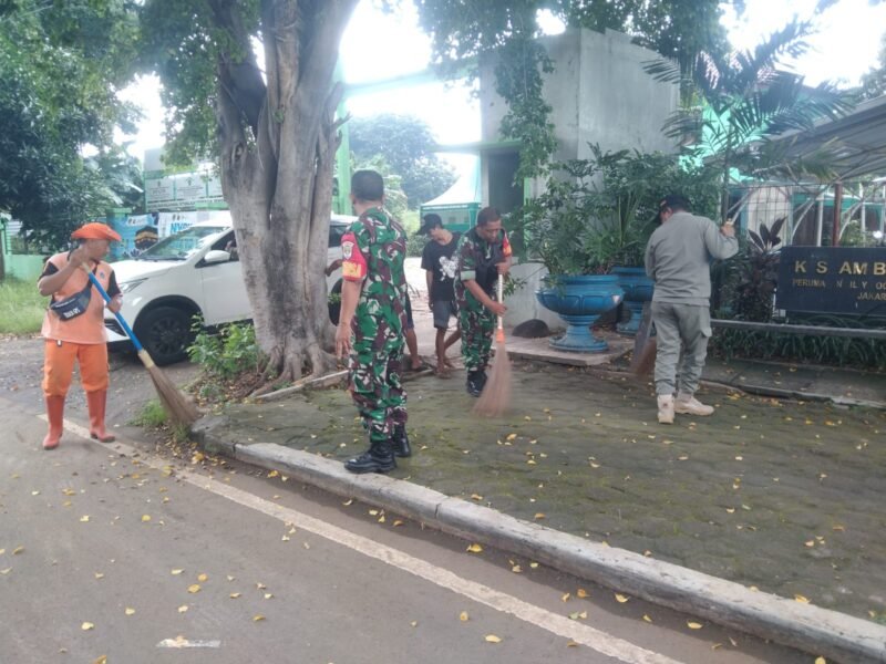 Kodim 0505/Jakarta Timur – Babinsa Koramil 08/Duren Sawit, bersama PPSU dan Warga, Giat karya bakti pembersihan sampah lingkungan RT.01/10 Kelurahan Kelurahan Pondok Kelapa Kecamatan Duren sawiit Kamis (05/04/24).