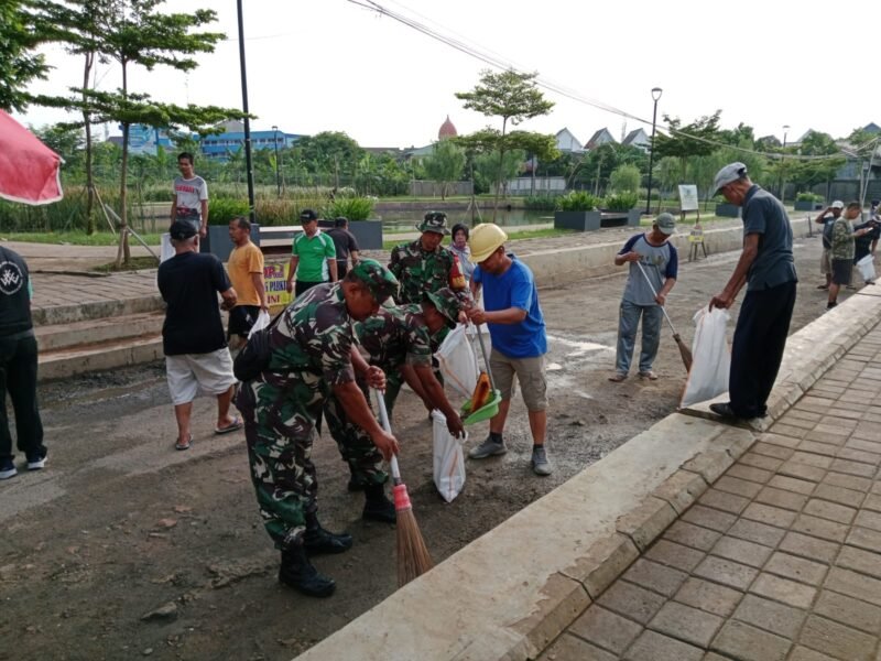 Koramil Cipayung Bersama Warga Bersihkan Lingkungan