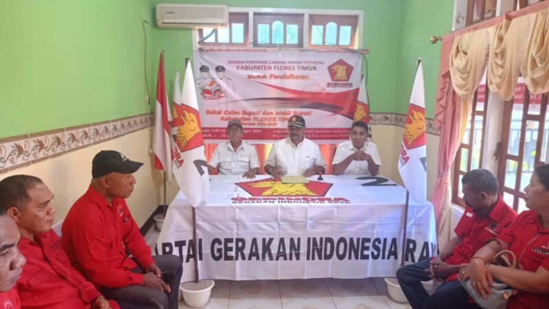 Resmi mendaftarkan diri sebagai Bakal Calon (Balon) Bupati Flores Timur (Flotim) di Sekretariat DPC Partai Gerindra Flores Timur (Flotim), Sabtu ( 11/5/2024), Mantan Bupati Flotim, Antonius Hubertus Gege Hadjon, S.T.,. berharap kemesraan yang pernah terjalin bersama Partai Gerindra di Pilkada Flotim 2017 bisa terulang kembali.