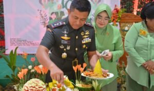 Kegiatan pun ditutup dengan menyanyikan lagu Mars Persit kemudian dilanjutkan dengan foto bersama dan pemotongan tumpeng yang dilakukan oleh Dandim 1710/Mimika dan Ketua Persit KCK Cab XXXV. Adapun tumpeng diberikan kepada Ny. Nikolebu dan Ny. Agus Raharusun yang merupakan anggota Persit yang disiplin dan berdedikasi tinggi terhadap organisasi. (Pen Kodim 1710/Mimika)