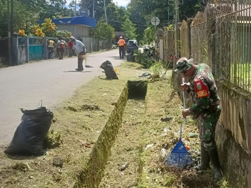 Guna menciptakan lingkungan yang bersih, rapi dan nyaman di lingkungan masyarakat, Babinsa Koramil 1710-02/Timika Sertu Elisa Serusiay bersama Kelompok Swadaya Masyarakat Kelurahan Dingo Narama melakukan kegiatan karya bakti pembersihan jalan di Kelurahan Dingo Narama, Distrik Mimika Baru, Kab. Mimika. Selasa (28/5/2024).