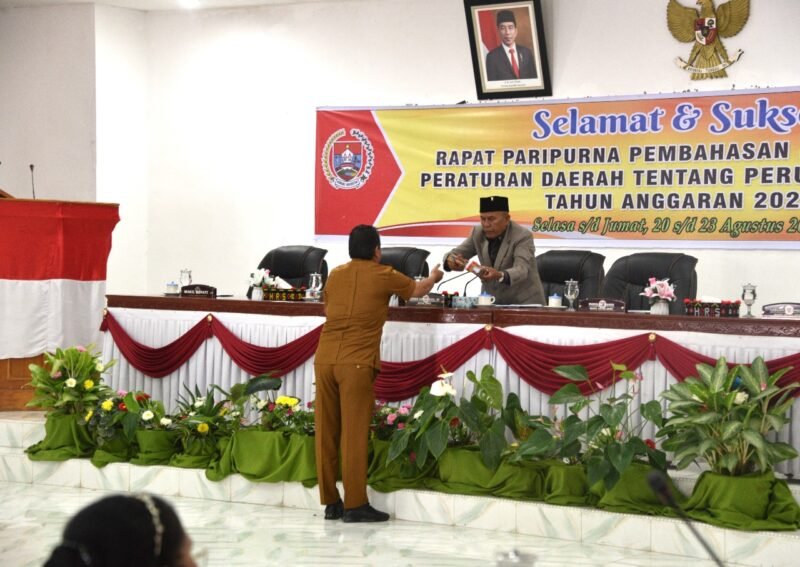 Bupati Humbang Hasundutan diwakili Asisten Pemerintahan dan Kesra Jaulim Simanullang sampaikan Nota Pengantar Keuangan Rancangan Peraturan Daerah (Ranperda) P-APBD Tahun Anggaran 2024 dalam Rapat Paripurna DPRD Humbahas , Selasa 20 Agustus 2024.