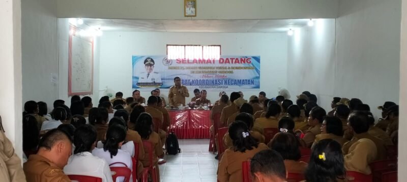 Penjabat (Pj) Bupati Tapanuli Utara Dr. Dimposma Sihombing, S.Sos,M.A.P, didampingi oleh Pimpinan Perangkat Daerah dan Kepala Bagian Setdakab Tapanuli Utara hadiri rapat koordinasi (Rakor) yang dilaksanakan di Kantor Camat Garoga, Senin (26/08/2024).