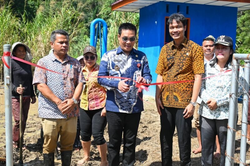 Wakil Bupati Humbahas Dr Oloan Paniaran Nababan, S.H. , M.H resmikan PLTS pompa air di Desa Purba Baringin Kecamatan Pakkat, Kamis (29/8). Peresmian dan serah terima pompa air dari Pempropsu ke Pemerintah Kabupaten Humbahas itu dihadiri Kadis Perindustrian, Perdagangan, Energi dan Sumber Daya Mineral Sumut Mulyadi Simatupang, M.Si., Asisten Perekonomian dan Pembangunan Martogi Purba, M.T., Kadis PUTR Renward Henry Marpaung, S.T., Camat Pakkat Ida Hayati Marbun, S.Sos., Kepala Desa Purba Baringin Dedi B Purba dan lainnya. Peresmian itu ditandai dengan pengguntingan pita oleh Wakil Bupati Humbahas Dr. Oloan Paniaran Nababan. Wakil Bupati Humbahas dan rombongan harus menyeberangi sungai untuk guntingan pita sebagai tanda diresmikannya PLTS pompa air itu.