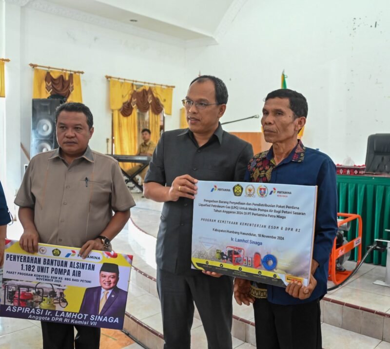 Direktur Perencanaan dan Pembangunan Infrastruktur Minyak dan Gas Bumi Kementerian Energi dan Sumber Daya Mineral (KESDM) Laode Sulaeman bersama Wakil Ketua Komisi VII DPR RI Ir Lamhot Sinaga, Bupati Humbahas Dosmar Banjarnahor, S.E dan lainnya menyerahkan bantuan sebanyak 1.182 unit mesin pompa air konvensi BBM (Bahan Bakar Minyak) ke BBG (Bahan Bakas Gas) bagi petani sasaran di Kabupaten Humbang Hasundutan, Senin (18/11) bertempat di Pendopo Bukit Inspirasi Doloksanggul. Bantuan itu diserahkan secara simbolis.