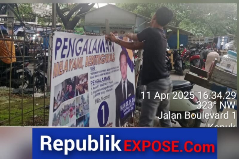 JAKARTA // Panitia Pemilihan Ketua RW 014 Cengkareng Timur dibantu dengan anggota Karang Taruna melaksanakan penurunan Alat Peraga Kampanye (APK) secara serentak di beberapa titik .