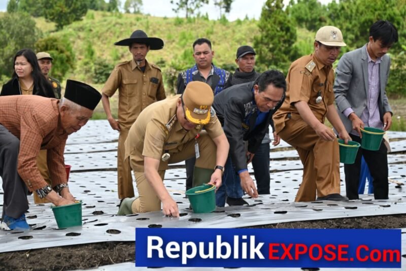 DOLOKSANGGUL // -Bupati Humbahas Dr Oloan P Nababan, SH ,MH bersama Kelompok Tani Dosroha di Desa Parsingguran II Kecamatan Pollung menanam bawang merah, Selasa 22 April 2025.