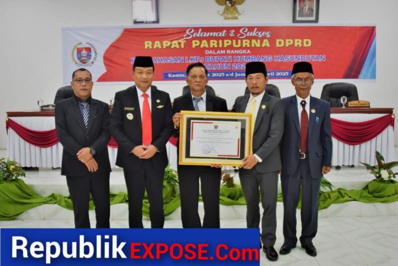DOLOKSANGGUL // – Ketua DPRD (Dewan Perwakilan Rakyat Daerah) Kabupaten Humbahas Parulian Simamora sampaikan rekomendasi DPRD terhadap LKPj (Laporan Keterangan Pertanggungjawaban) Bupati Humbahas Tahun Anggaran 2024 kepada Bupati Humbahas Dr Oloan P Nababan SH MH, dalam Rapat Paripurna DPRD Humbahas, Jumat 25 April 2025.