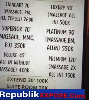 Warga sekitar mengeluhkan aktivitas prostitusi di lokasi spa yang beroperasi hingga larut malam. Pengakuan adminnya adanya praktik prostitusi terselubung dengan kedok layanan pijat. Berdasarkan informasi yang diterima redaksi, pelanggan tertentu disebut dapat memesan “layanan tambahan” dengan tarif khusus di luar daftar harga resmi spa tersebut.