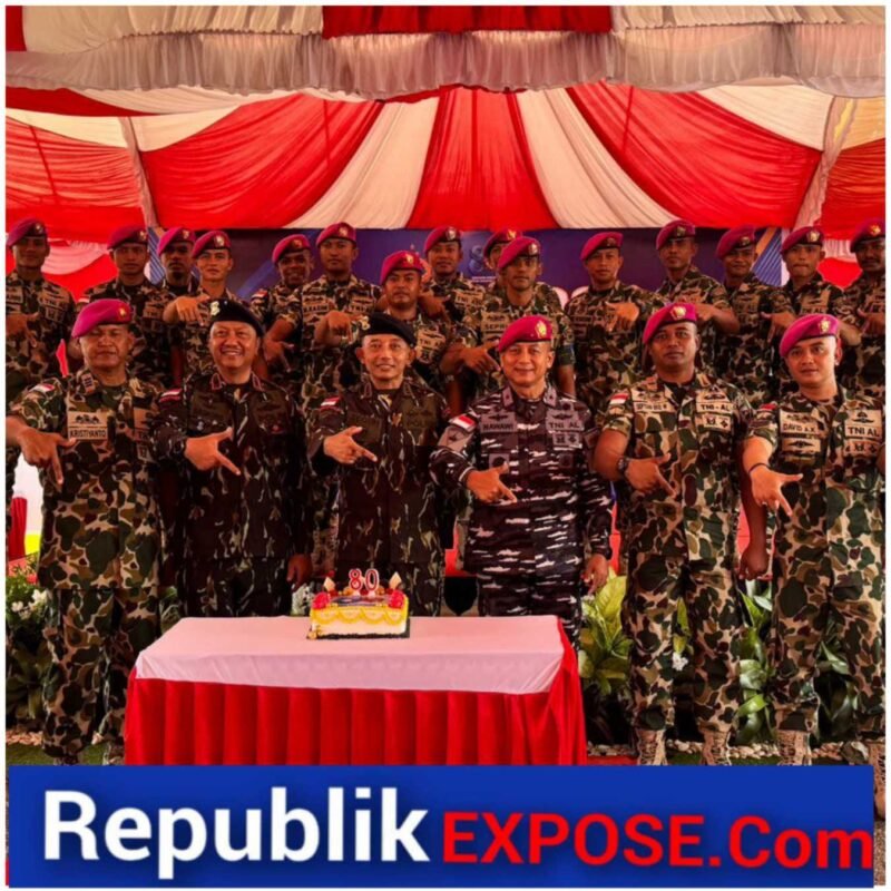 KUPANG // TNI AL, Dispen Kormar (Kupang) Sebagai wujud soliditas Korps Marinir dengan Korps Brimob Polri di wilayah Kupang Nusa Tenggara Timur, prajurit Batalyon Marinir Pertahanan Pangkalan (Yonmarhanlan) VII Kupang berikan surprise berupa kue ulang tahun kepada Satbrimob Polda Nusa Tenggara Timur yang berada di Jalan Terusan Timor Raya Pasir Panjang Kota Lama Kota Kupang Nusa Tenggara Timur, Jumat (14/11/2025),