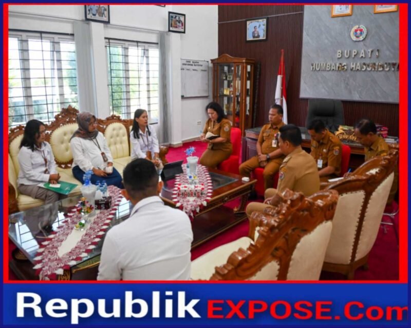 Bupati Humbang Hasundutan Dr Oloan Paniaran Nababan menerima audiensi sekaligus silaturahmi Kepala Loka POM (Pengawas Obat dan Makanan) Toba, Tiur Gultom S.Farm di Ruang Kerja Bupati Humbang Hasundutan, Senin 26 Januari 2026.