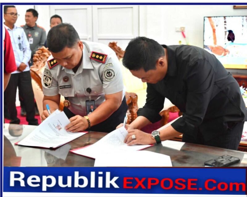 Bupati Humbang Hasundutan Dr Oloan P Nababan ,SH, MH menandatangani Memorandum of Understanding (MoU) terkait Pelaksanaan Pidana Kerja Sosial dan Pidana Pelayanan Masyarakat Bagi Anak dengan Kepala Balai Pemasyarakatan (Bapas) Kelas II Sibolga Sinarta Tarigan ,SH , MH di Kantor Bupati Humbang Hasundutan Kompleks Perkantoran Bukit Inspirasi, Jumat (30/1/2026).