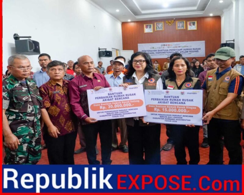 RepublikeXpose. Com – DOLOKSANGGUL – Pemerintah Pusat melalui Badan Nasional Penanggulangan Bencana (BNPB) serahkan bantuan stimulan perbaikan rumah Rusak Ringan (RR) dan Rusak Sedang (RS) yang terdampak bencana hidrometeorologi secara virtual di tiga provinsi yaitu Sumatera Barat, Aceh dan Sumatera Utara, termasuk didalamnya wilayah Kabupaten Humbang Hasundutan (Humbahas).