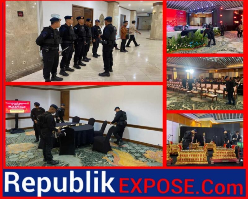 RepublikeXpose.com = JAKARTA — Unit Jibom Satuan Brimob Polda Metro Jaya melaksanakan sterilisasi keamanan pada rangkaian Perayaan Nasional Hari Raya Imlek 2577 Kongzili di Hotel Grand Sahid Jaya, Tanah Abang, Jakarta Pusat, Minggu (22/2/2026).