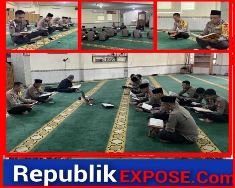 RepunlikeXpose.com =JAKARTA – Personel Batalyon A Pelopor Satbrimob Polda Metro Jaya melaksanakan Tadarus Al-Qur’an di Masjid At-Taubah, Jakarta Pusat, Kamis (26/2/2026). Agenda rutin yang dimulai pukul 08.00 WIB ini dipimpin oleh Ipda Nurali, S.H.. Suasana khidmat terlihat saat anggota melaksanakan sholat sunnah sebelum membaca Al-Qur’an.